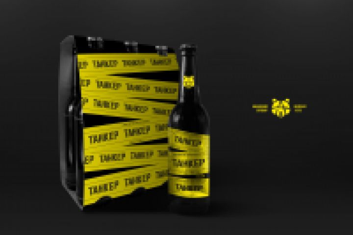 Этикетка имитирует предупредительную ленту или ленту заграждения, предупреждающую о какой-либо опасности. Однако, несмотря на смысловое значение, этот образ в контексте данного дизайна негативной нагрузки не несет. Яркий цвет на черном фоне стекла бутылки выгодно выделяет данный продукт на магазинной полке среди товаров конкурентов.
