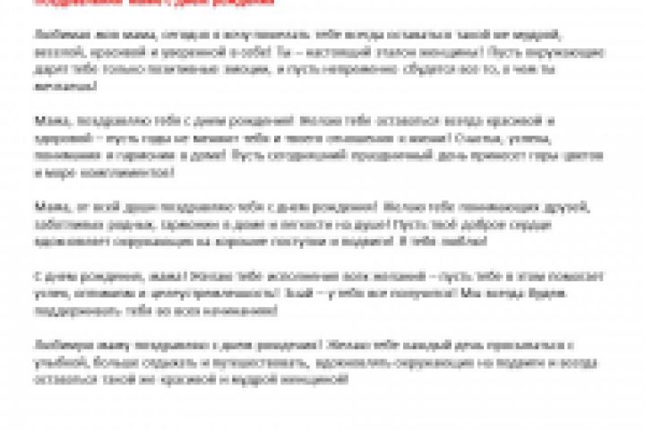 Также мною написано много аналогичных поздравительных текстов - дедушкам, бабушкам, любимым женщинам, в стихах и прозе.