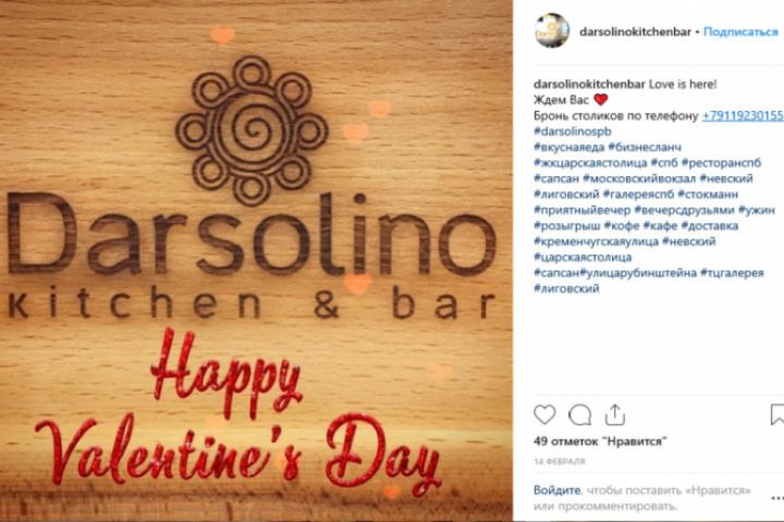 Ресторан в центре Петербурга. Было предложено около 40 вариантов, заказчик выбрал этот. В названии DARSOLINO отражается солнце, море, дары великолепной кухни.