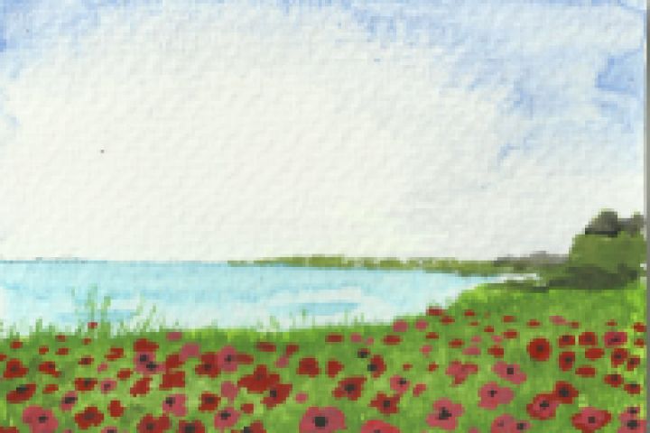 Маковое поле. Акварель. Формат АТС (размер игральной карты)