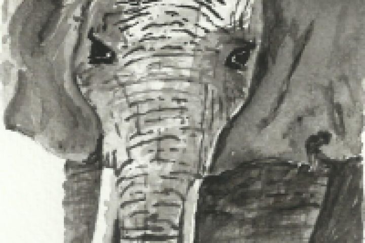 Слон. Акварель. Формат АТС (размер игральной карты)