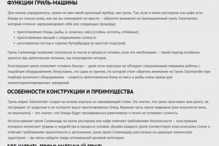 СЕО-тексты для сайта с оборудованием для баров, кафе, ресторанов. Уникальность от 95%. https://chefllc.ru/catalog/grili-salamander