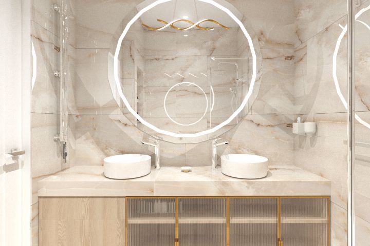 Дизайн выполнен в мягких светлых оттенках. Проект в реализации