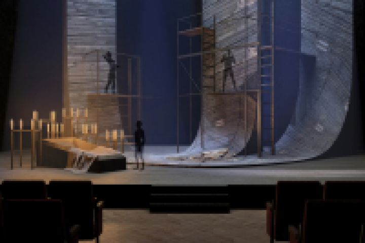 Проект состоит из трех трансформирующихся сцен. Действие данной сцены происходит в церкви. Представляет собой перевернутые церковные своды. Стропила и леса предназначены для актеров, которые будут перемещаться по ним.