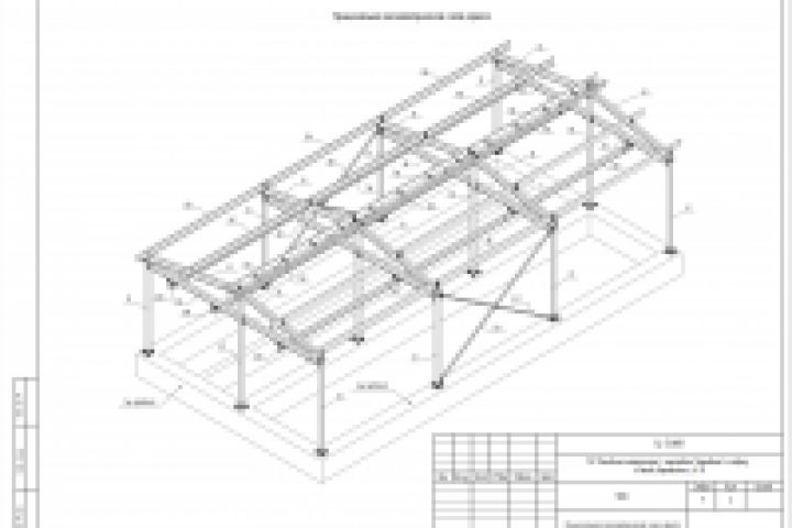 Ниже представлены рабочие чертежи марки КМ каркаса навеса площадки для ремонта двигателей.