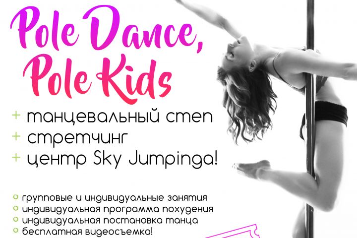 Макет листовки для танцевальной студии, с использованием предоставленного логотипа и фирменных цветов.