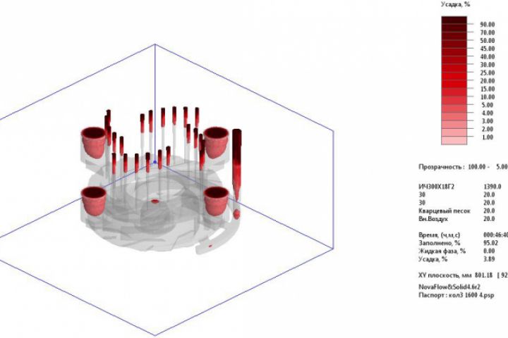 В рамках работы по оптимизации технологии получения отливки удалось повысить плотность отливки, исключив образование усадочных дефектов, в зоне сопряжения лопаток и дисков.