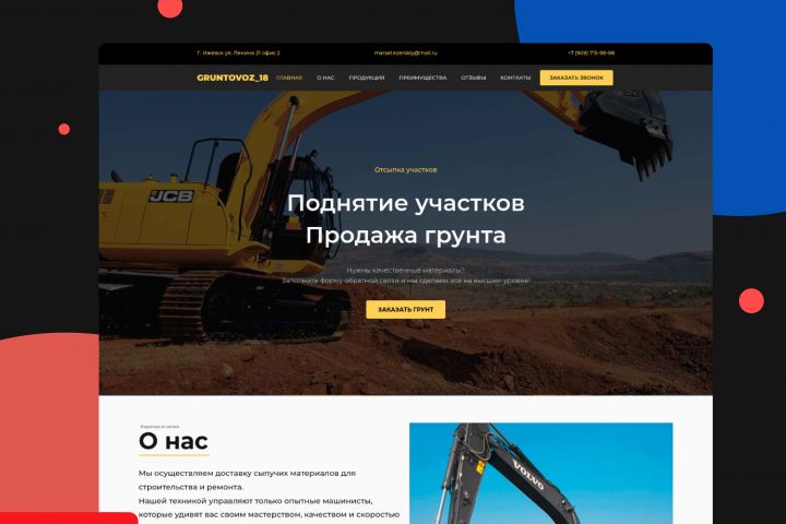 Gruntovoz18 — это лендинг, созданный для предоставления услуг по доставке различных типов грунтов и аренде специальной техники. Проект направлен на привлечение клиентов, заинтересованных в эффективных и качественных решениях для своих строительных и земельных работ.