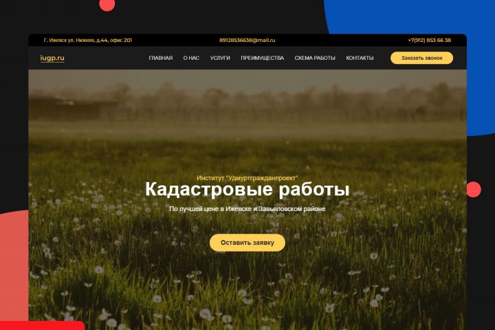Iugp — это современный лендинг, посвященный предоставлению кадастровых услуг. Проект ориентирован на то, чтобы соединить клиентов с профессиональными кадастровыми специалистами, предлагая простую и интуитивно понятную платформу для получения необходимых услуг в сфере недвижимости.