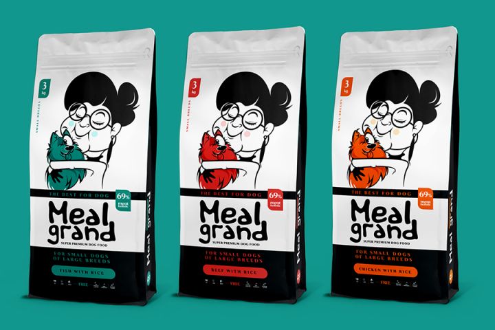 Разработка персонажей и серии упаковок для производителя собачьего корма