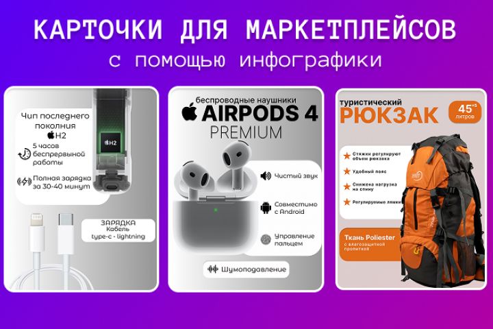 Целью было разместить все главные достоинства товара и показать его сильные стороны.