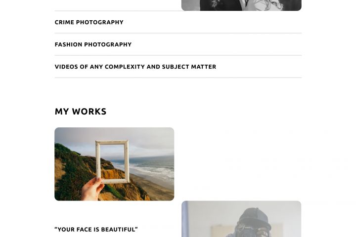 Сайт-визитка для начинающего фотографа в минималистичном стиле. Если Вам нужен похожий дизайн, пишите)