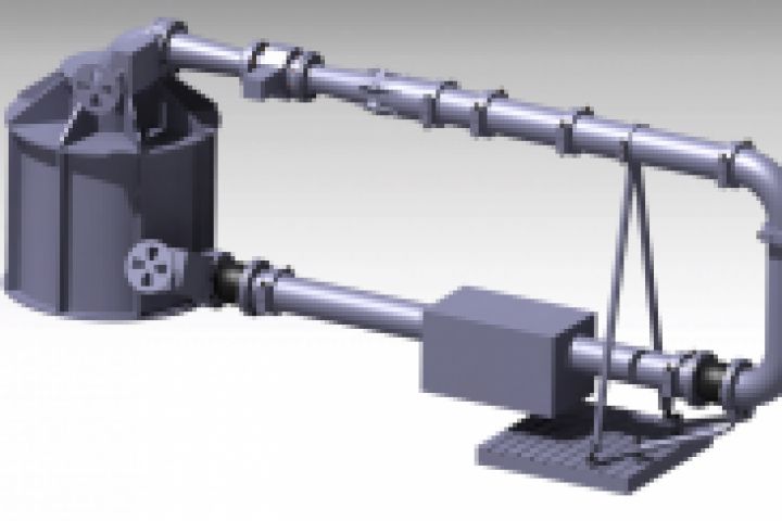 Для испытания макетов нефтяных насосов разработал стенд. Включающий в себя: бак, расходомер, две шиберных задвижки, два виброкомпенсатора, телескопическую трубу. Соединенные в замкнутый контур.