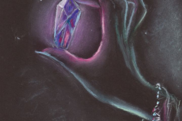 Рисунок по словосочетанию "кристалл". Нарисовано пастелью на чёрной бумаге.