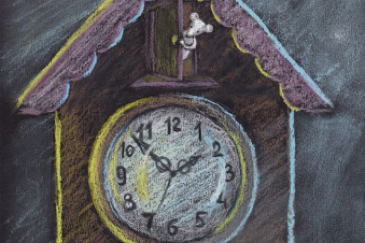 Рисунок по словосочетанию "часы". Нарисовано пастелью на чёрной бумаге.