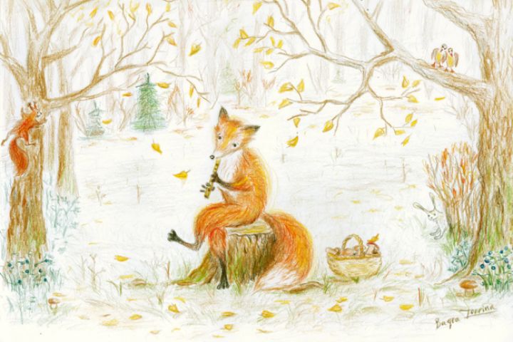 Осенняя иллюстрация с лисой.