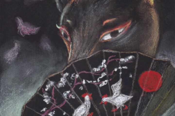 Нарисовано пастелью на чёрной бумаге по словосочетанию "веер".