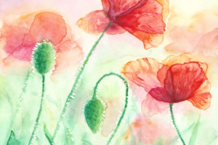 Красные маки акварелью