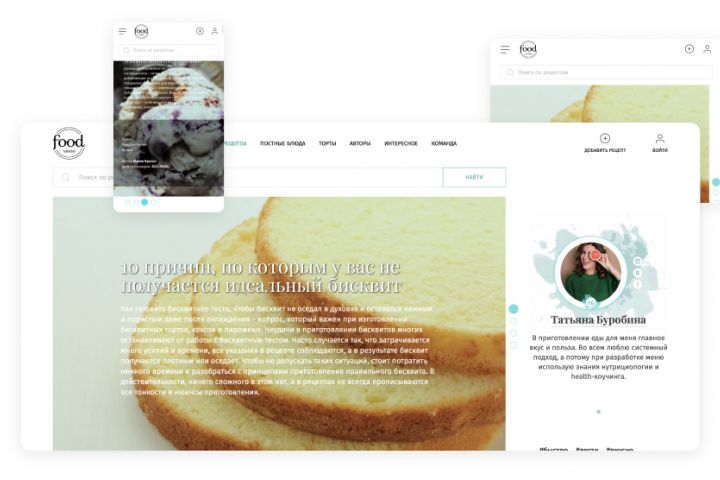 Адаптивный сайт "под ключ" с каталогом рецептов. Поддержание работоспособности сервера. Доработки личного кабинета. Контентная поддержка.
