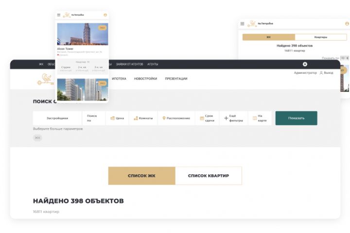 Собственный агрегатор заявок от агентов, распределённых между управляющими ЖК. Мобильная версия. База ЖК и актуальных объектов по каждому из них с функционалом фильтрации по различным параметрам и поиска по карте. Обновление агрегатора с учётом меняющихся требований. Контроль распределения заявок.