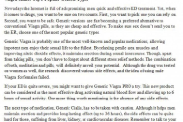 Viagra online: Top 5 Popular Generic Types