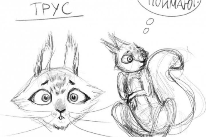 Характер персонажа по ТЗ- Трусливая белка, поза и выражение должны выражать неуверенность, опаску. #эскиз #концепт-арт