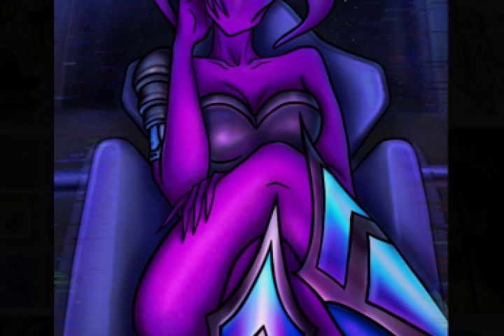 Иллюстрация для инди-проекта Инопланетная обаятельная пиратка, смелая захватчица космических кораблей.