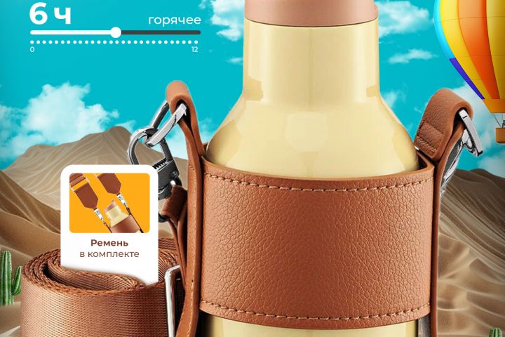 Инфографика для маркетплейсов. Товар: Термокружка. Марка: Китфорт. Цель: привлечь внимание покупателя на площадке