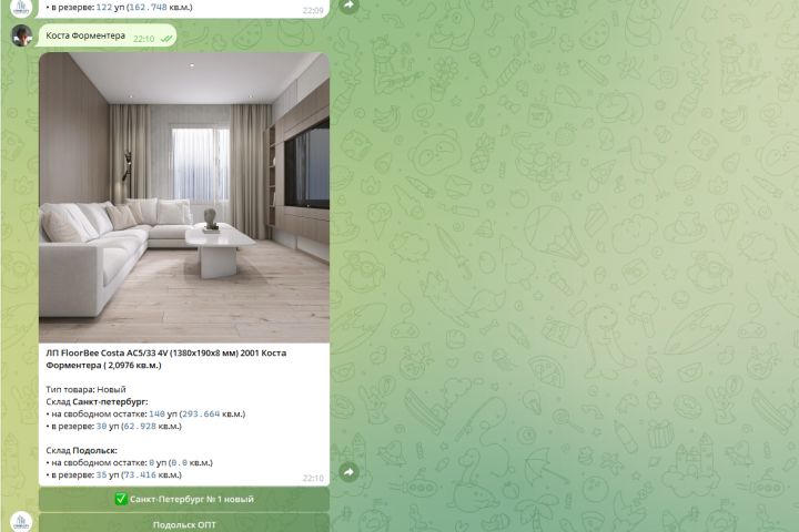Телеграмм бот для "Строй Сити", через который заказчики могут посмотреть остатки товаров на складе и зарезервировать их для последующей покупки