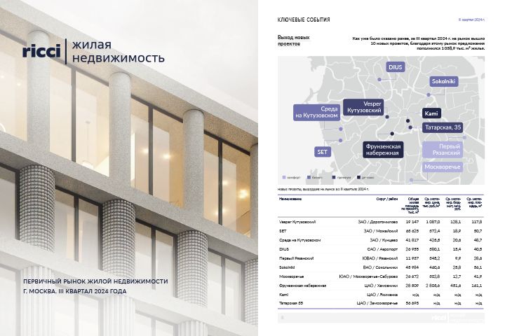 Необходимо было сверстать и оформить ежеквартальный аналитический отчет (3 квартал 2024 г.) о состоянии рынка элитной и бизнес-недвижимости Москвы.