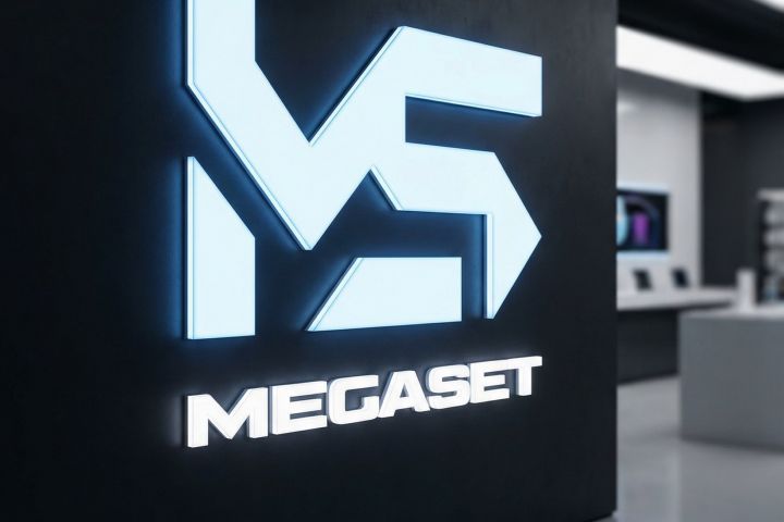 Логотип MEGASET, состоящий из букв М и S, которые созданы из геометрических форм
