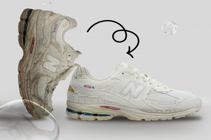Разработка креативных предложения для соцсетей. Идея заключалась в том, чтобы изобразить на одной половине грязное пространство вместе с грязным кроссовком, а на другой чистое. В трех вариантах, с использованием фирменных цветов.