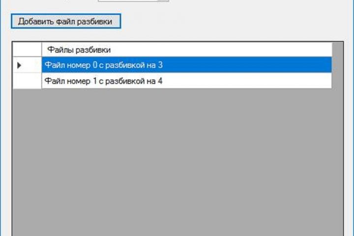Кнопка «Добавить файл разбивки» вводит номер файла и количество секторов для разбивки в данном файле.