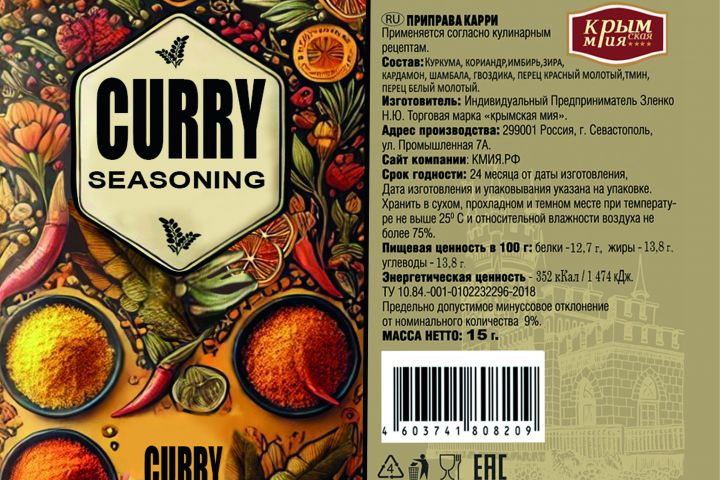 Дизайн двухсторонней этикетки для приправы карри.