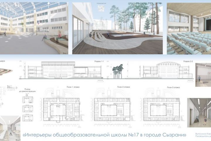 Создание комфортной и модернизированной образовательной среды.В ходе работы создана проектная концепция и единый эко стиль, который благоприятно воздействует на эмоциональное состояние учеников и педагогов. Модернизация здания: создание дополнительной площади для пропускного режима, создание перекрытия из ряда стальных арочных ферм с светопрозрачной кровельной системой.
