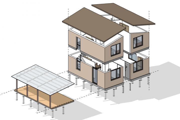 Проект модульного дома с террасой (взрыв-схема)