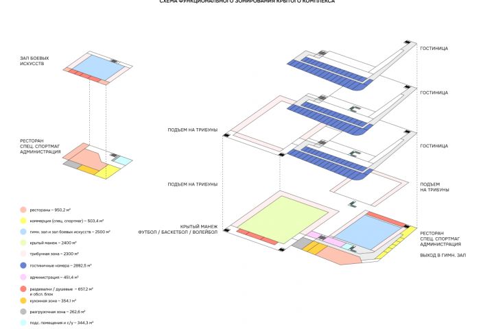Функциональное зонирование спортивного комплекса (взрыв-схема)