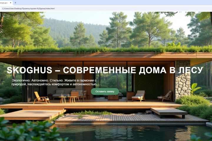 Основной задачей при разработке сайта для компании SkogHus было создание современной, удобной и информативной платформы, которая бы отражала философию бренда — строительство экологичных, автономных и стильных домов в гармонии с природой. Сайт должен был стать не только визитной карточкой компании, но и мощным инструментом для привлечения клиентов, демонстрации преимуществ услуг и упрощения процесса взаимодействия с потенциальными заказчиками.