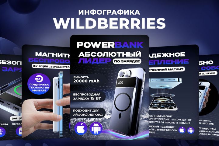 Дизайн карточек, инфографика для маркетплейсов Вайлдберриз, Озон
