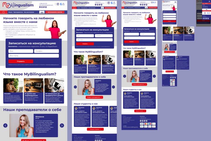 Доработка дизайна и создание мобильной версии страниц сайта языковой школы
