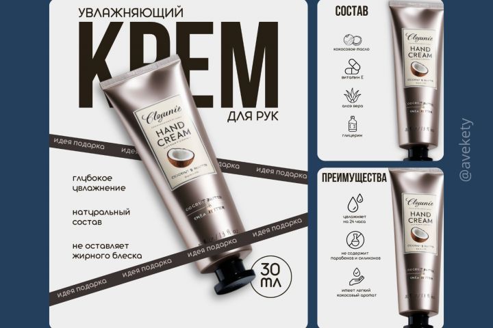 Получилась лаконичная серия карточек где отображены основные преимущества крема и состав