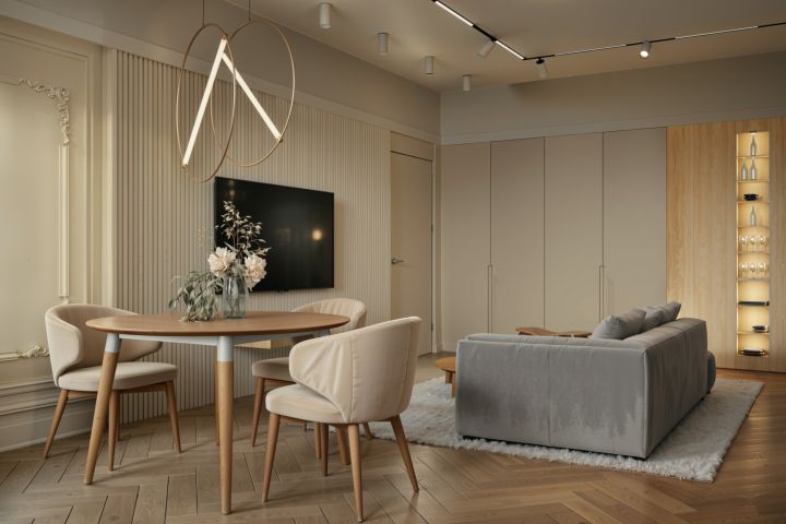 Визуализация кухни-гостиной в неоклассическом стиле