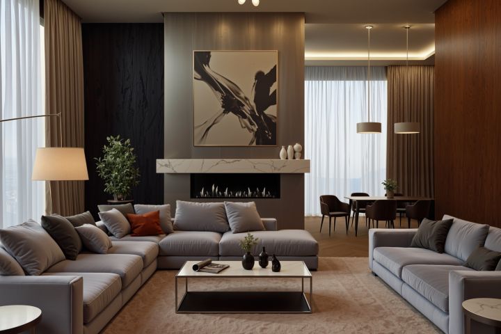 Концептуальная визуализация гостиной в стиле контемпорари