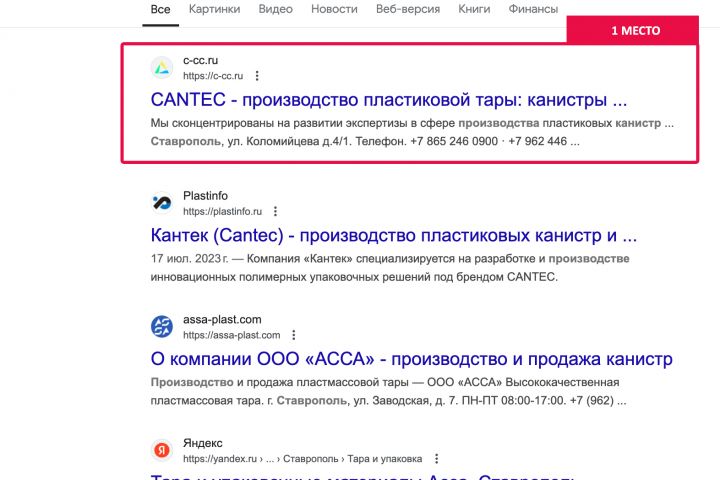 Вывод сайта в ТОП по запросу "Производство канистр ставрополь"