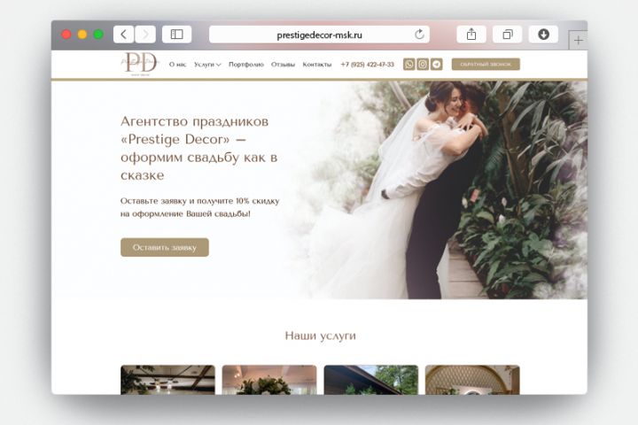 Разработка многостраничного сайта студии декора мероприятий Prestige Decor Технические работы проведенные на сайте: -Адаптивная вёрстка сайта по макету -Настройка форм заявок