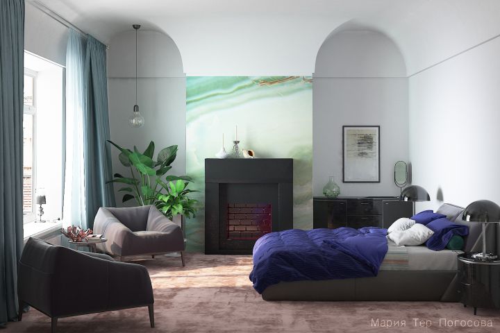 Дизайн-проект интерьера гостиничного номера "Морской отель". Стиль - неоклассика.