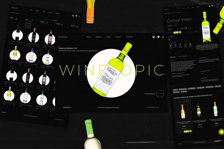 Отрисовка многостраничного сайта для винодельни. Каждый элемент отрисован вручную.