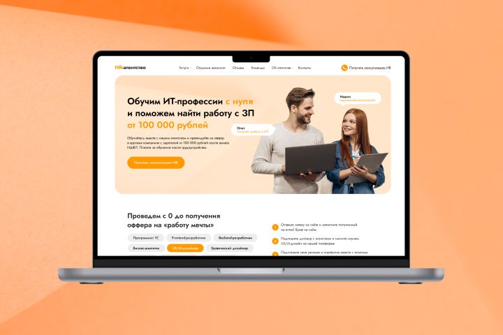 Дизайн Landing Page для HR-компании, которая занимается рекрутингом в ИТ.