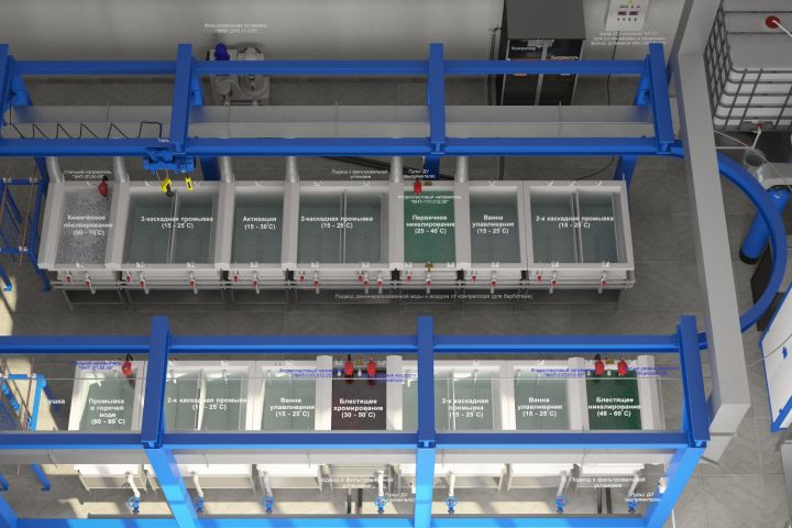 Моделирование и визуализация производственных процессов гальванического цеха для компании Impgold. Варианты гальванических линий (3ds Max + VRay)