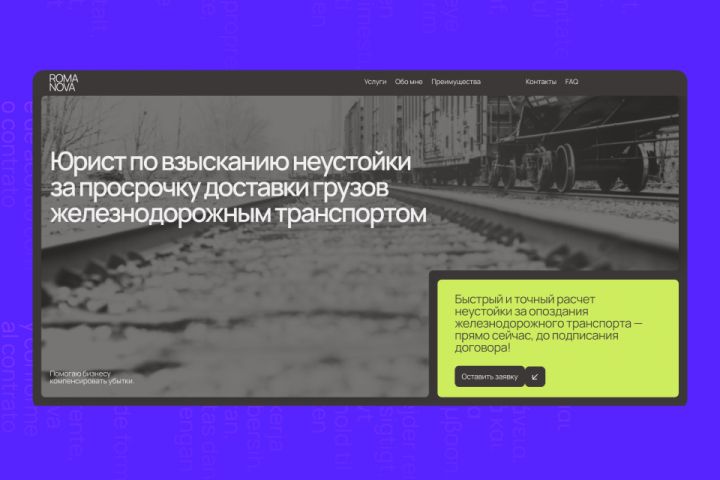 Сайт предоставляет удобный инструмент для получения юридической помощи, позволяя клиентам быстро узнать об услугах специалиста, порядке взыскания неустойки и оставить заявку на консультацию.